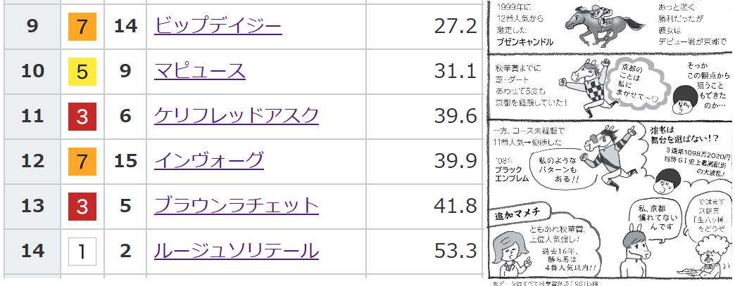 【11番人気、12番人気】は有力候補ですので抑えるようにします。