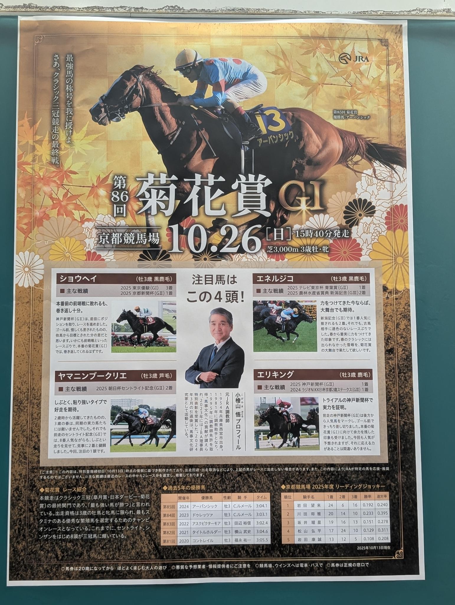 菊花賞4頭ポスターも掲示されていました。