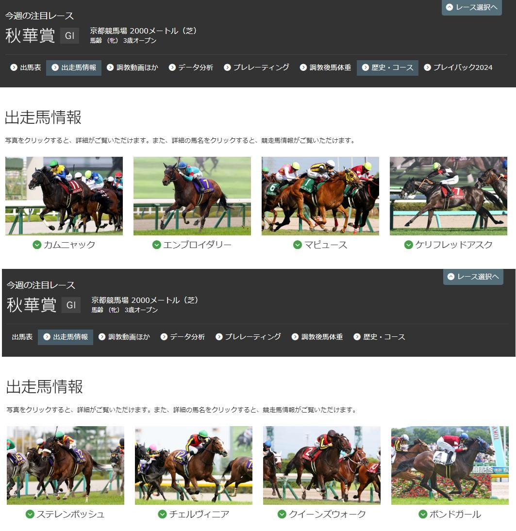 その下にある出走馬情報