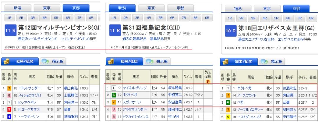 1995年3着は1枠1番ヒシアケボノ②人気(前走スワンS1着)