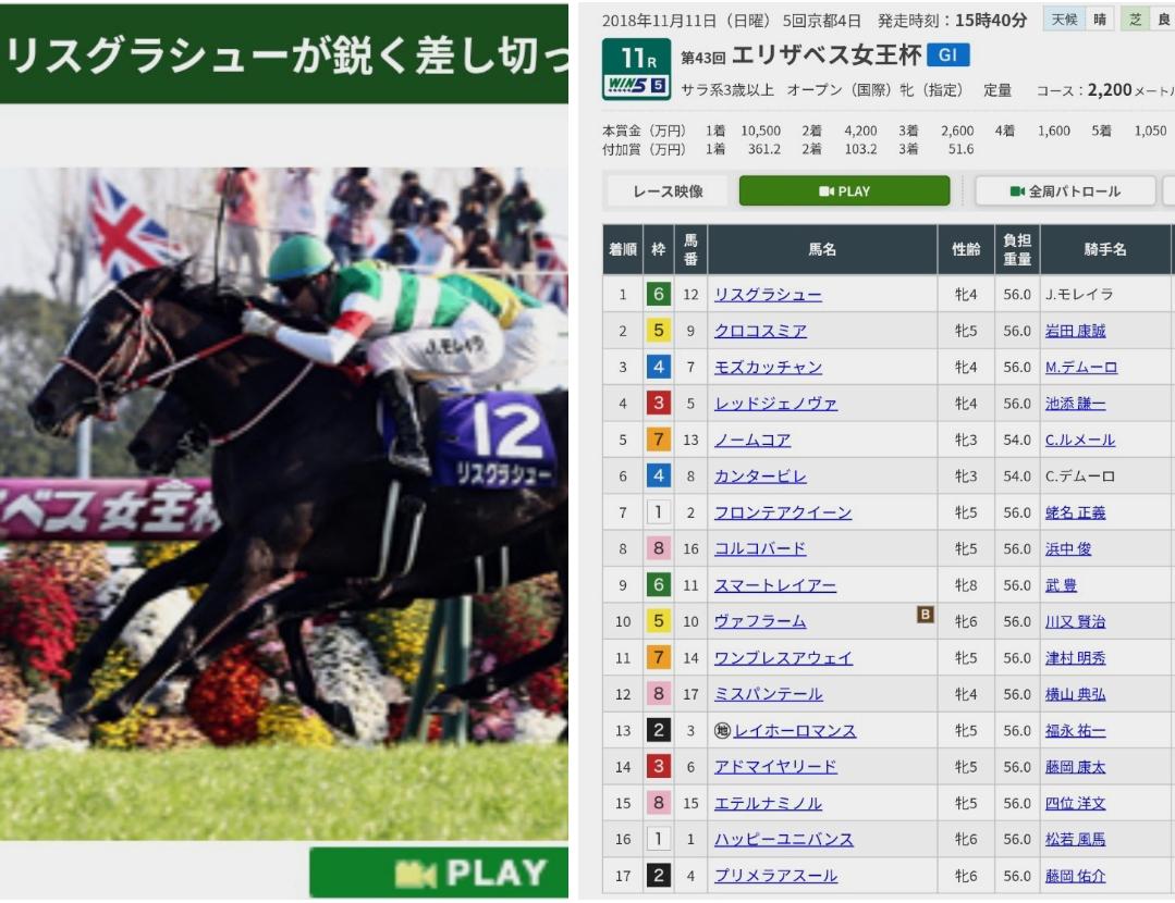 富士Sのシャイニーロックには役割があると考え、シャイニーロックのデビュー戦の【2018年11月10日の週】、11月11日がリスグラシューの初G1・エリザベス女王杯でした。