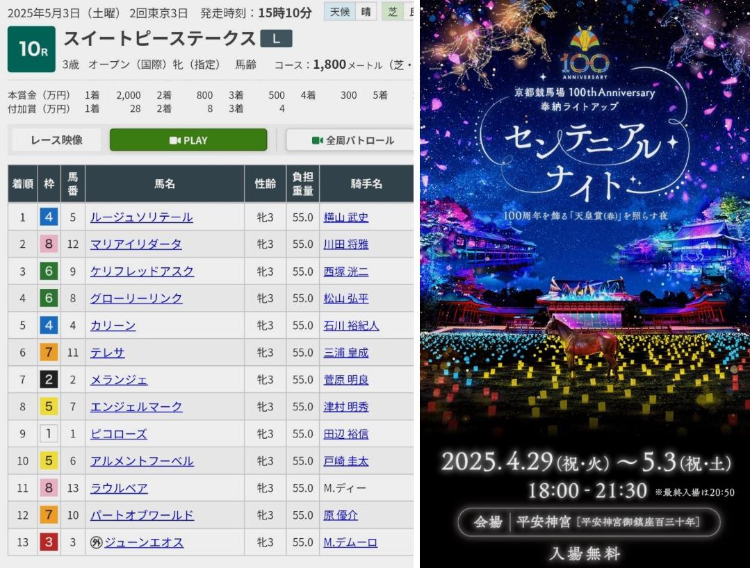 【光】と【京都競馬場】で考えるなら、【5月3日のスイートピーS】が該当するかも知れません。(たまたまですが、ルージュ・ケリフレッド・テレサの名も。)