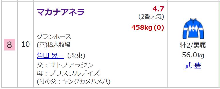 8枠⑩番 マカナアネラ 武豊騎手