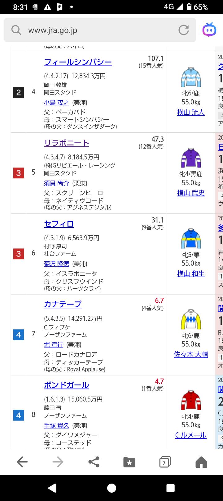 条件を変えても人気でした。(④人気1着)