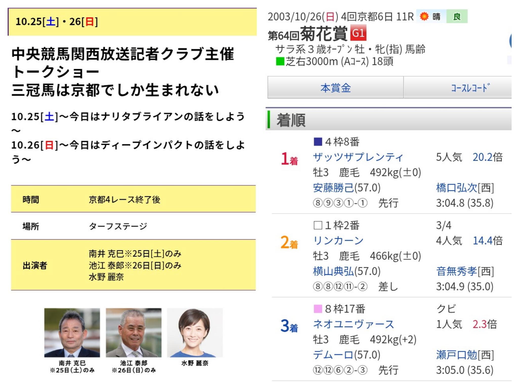 この年のJRAは菊花賞でネオユニヴァースが3着に負けて「3冠馬」になれなかった年