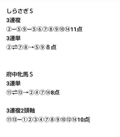 「ほっとするね、緑の府中」から6枠ミアネーロ、森博物館から森オーナーがいる8枠など、人気薄からなのでザーッと流します。見せ場を作ってくれれば。