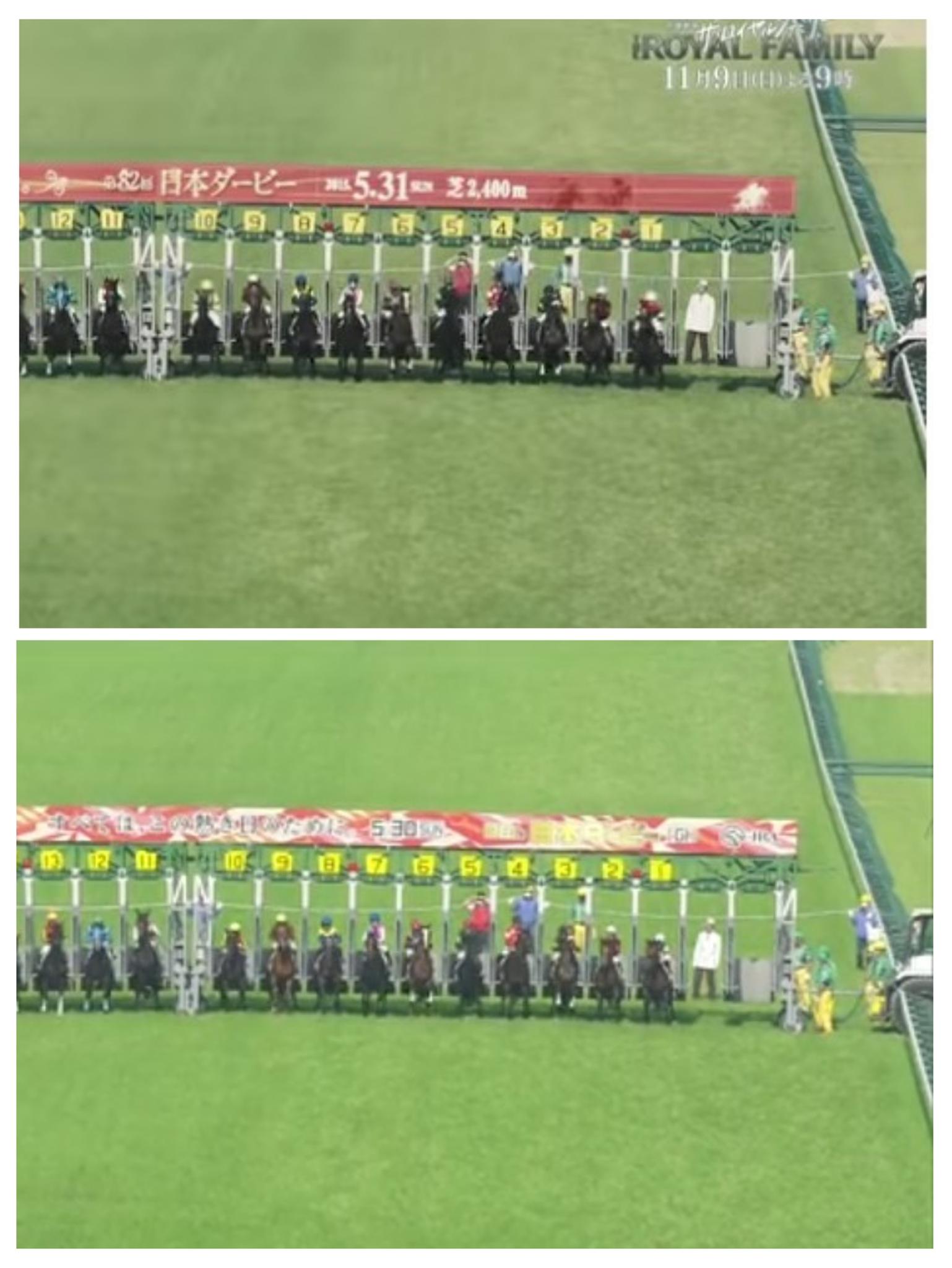 上がドラマの予告、下が実際の映像、見にくいですけど①番⑩番は勝負服が違います