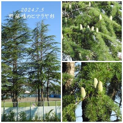 7月5日、野球場外野席に映えているヒマラヤスギです。