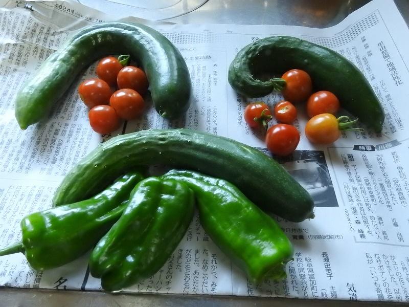 7月24日、自宅のほんの小さな畑で採れた野菜を、