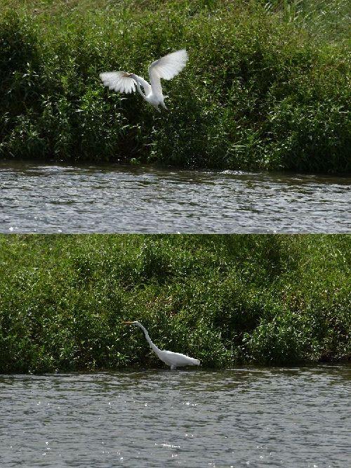 仕方なく飛び立つしらさぎ?(正確な名前分からず)。
