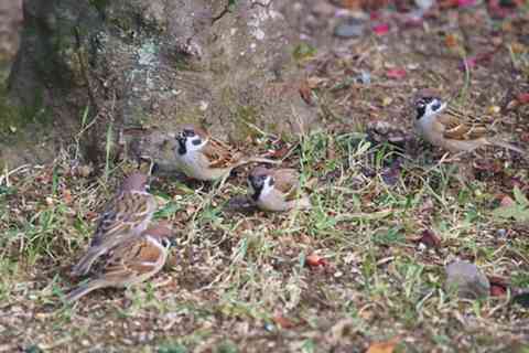 餌場に来る雀の数は5~6羽ぐらい。9年前の3分の1ぐらい
