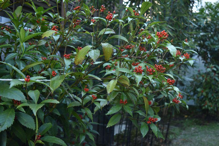妻が育てている千両が、この頃の寒さのせいか赤くいろずいてきました。