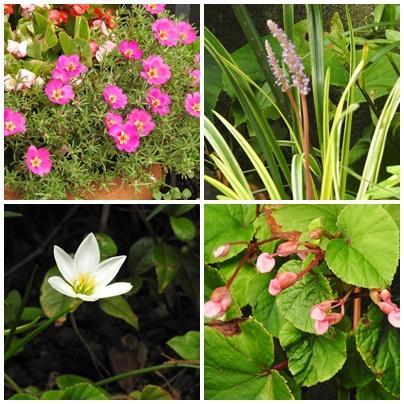 庭の爪切り草、ヤブラン、玉簾、秋海棠などの
