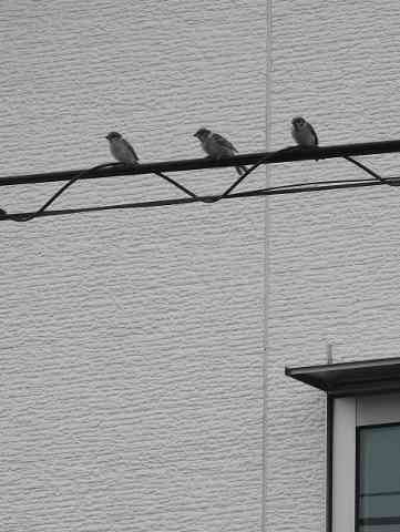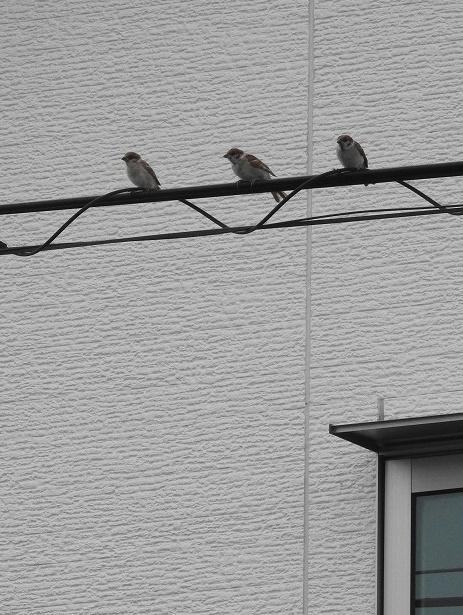 仲良く電線に3羽止まって、私が通り過ぎるのを