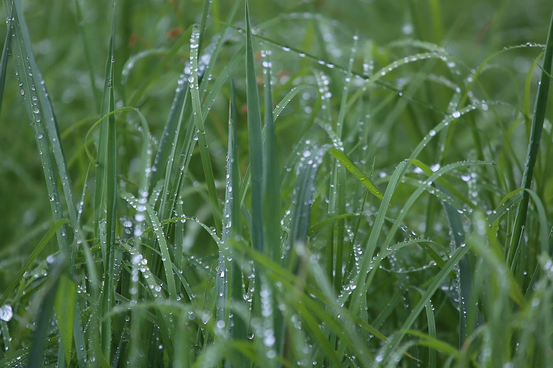 6時過ぎに起床し、雨戸を開けたら野原の様に茂った草の葉に