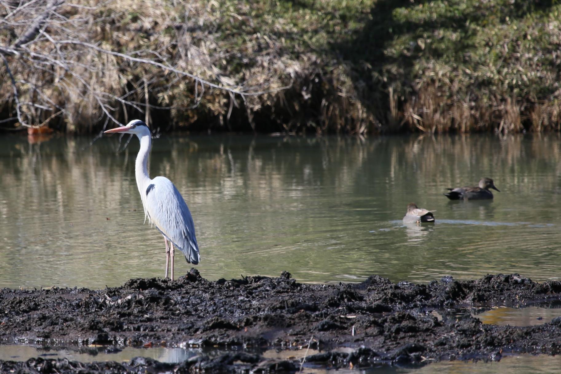 その近くをアメンボウが水面を渡っていました。