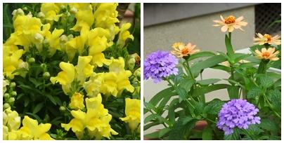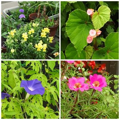 黄色の金魚草、秋海棠、朝顔、爪切り草です。