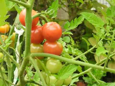 庭の片隅の小さな畑に、ミニトマトが植えて