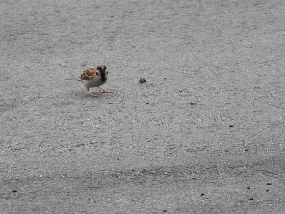 散歩の折に見つけた、朝食を探している雀