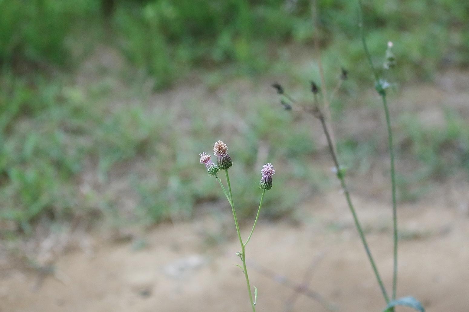 食事をする部屋の雨戸をあけたら足元にキツネアザミが咲いていました。