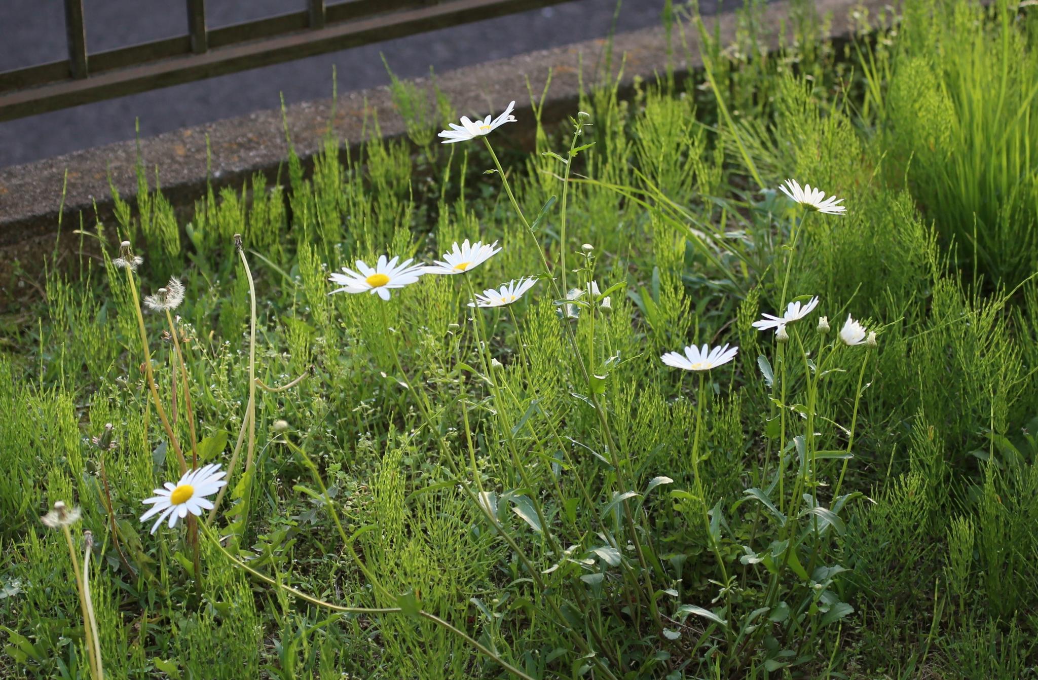 この白い花はフランスギクと言われていますが、マーガレッという人もいます。