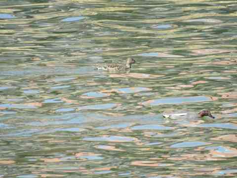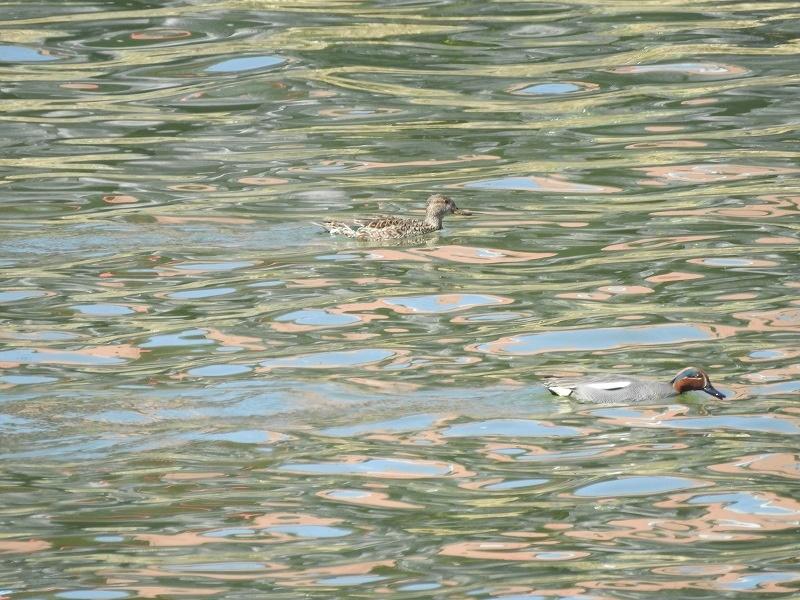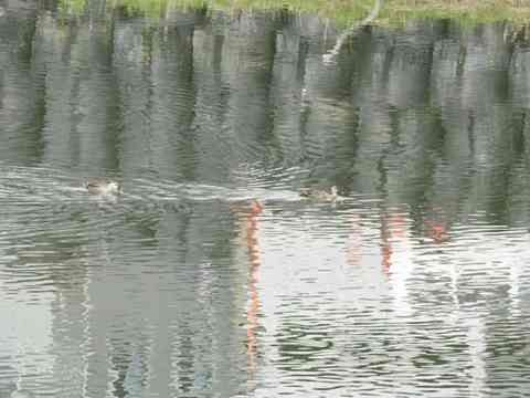 カルガモさんの番が、私達も泳ごうと言って頑張っています。