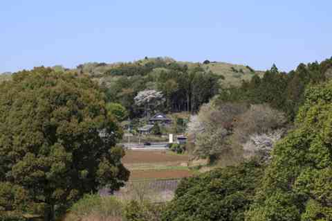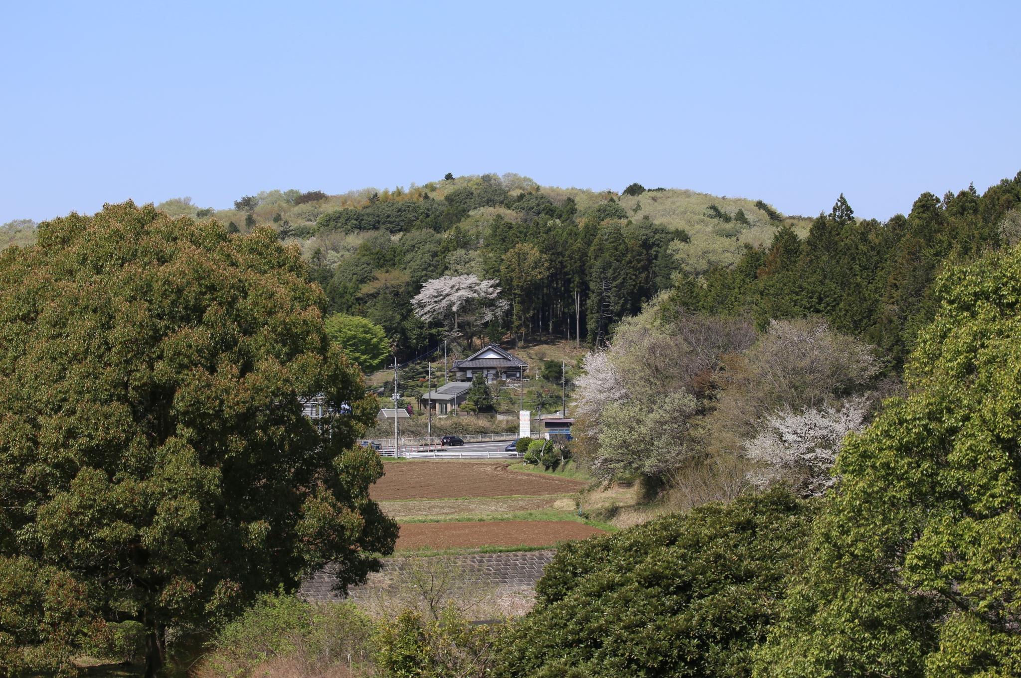 手前の車が走っている道は国道355線で、現代の笠間市と石岡市を結んで