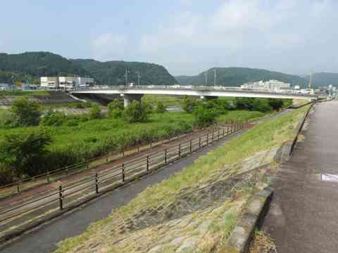 駐車場から土岐川の国長橋を眺めたら、