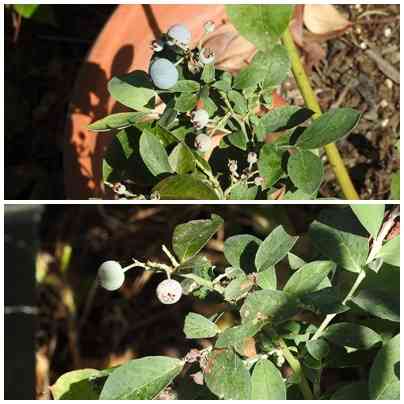 鉢植えの木に、ブルーベリーの実が