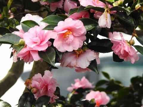 ピンク色の山茶花が、今年は沢山の奇麗な