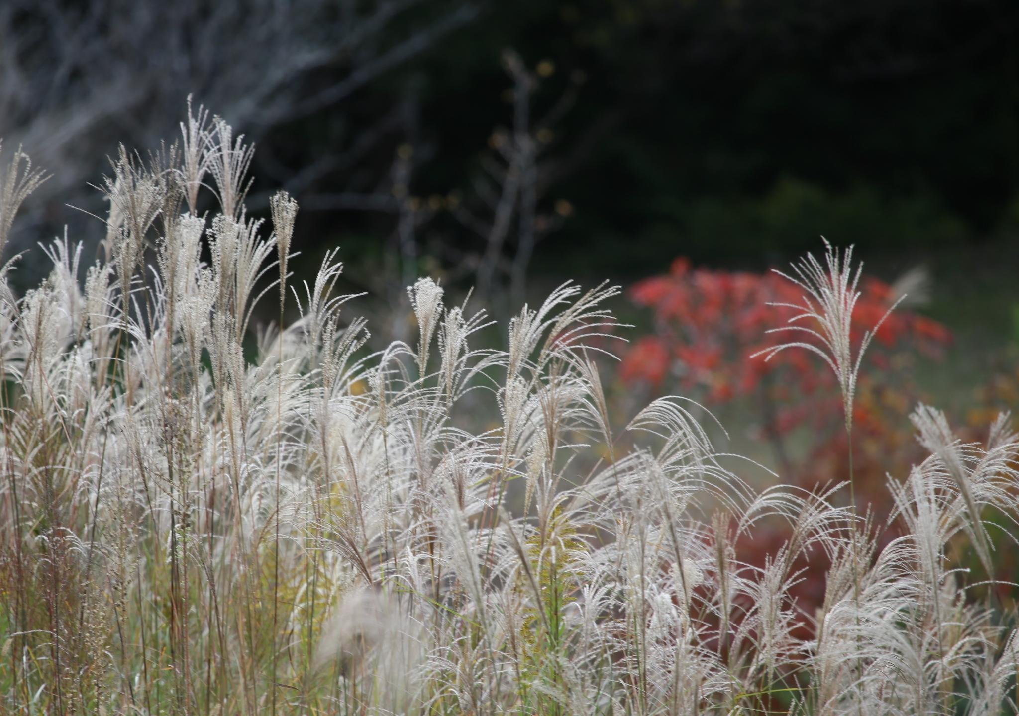 公園の土手はススキに覆われて、風が吹くたびに白い波のように揺れています。