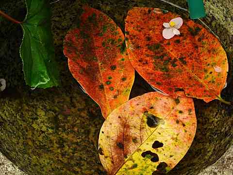 柿の葉が奇麗に紅葉してきたので、良いものを選んで