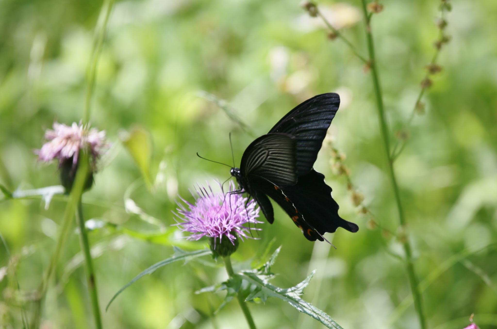 普通のアゲハチョウは時々見ますが、こんな黒い蝶々は