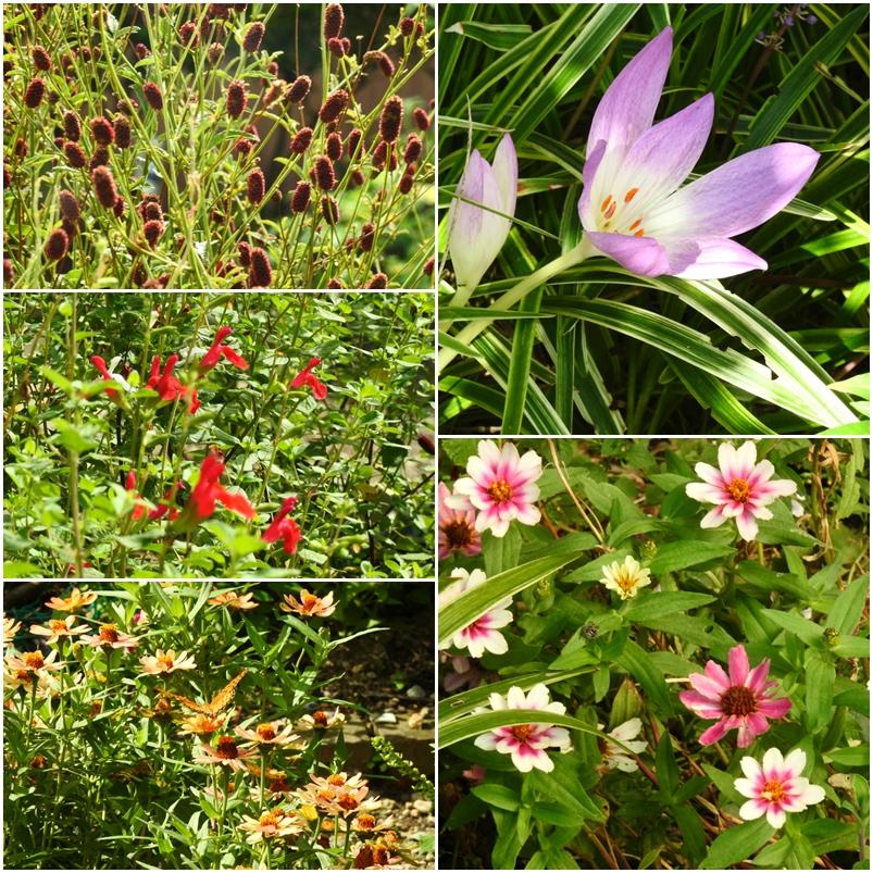 庭の花が奇麗に咲いています。黄色の蝶々が