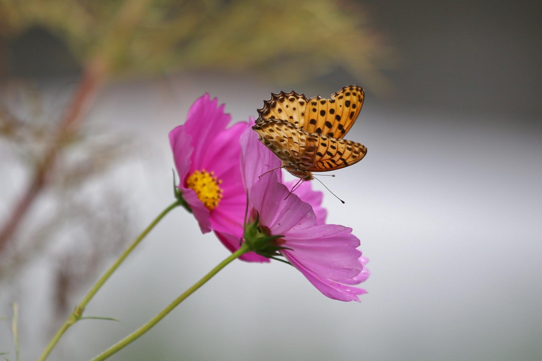 コスモスに止まったツマグロヒョウモンは、良い
