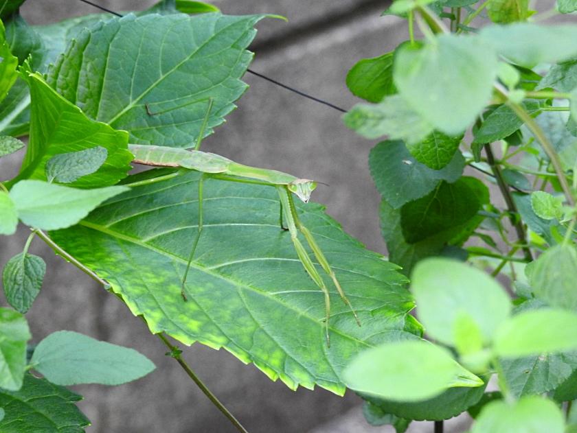 何気なく庭の花を見ていましたら、カマキリがいました。