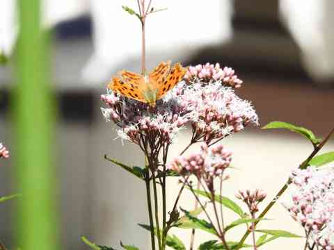 留まっている蝶はキタテハですね。表と裏ではこんなに模様が違います。