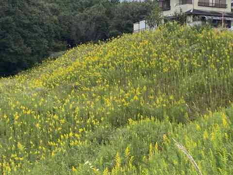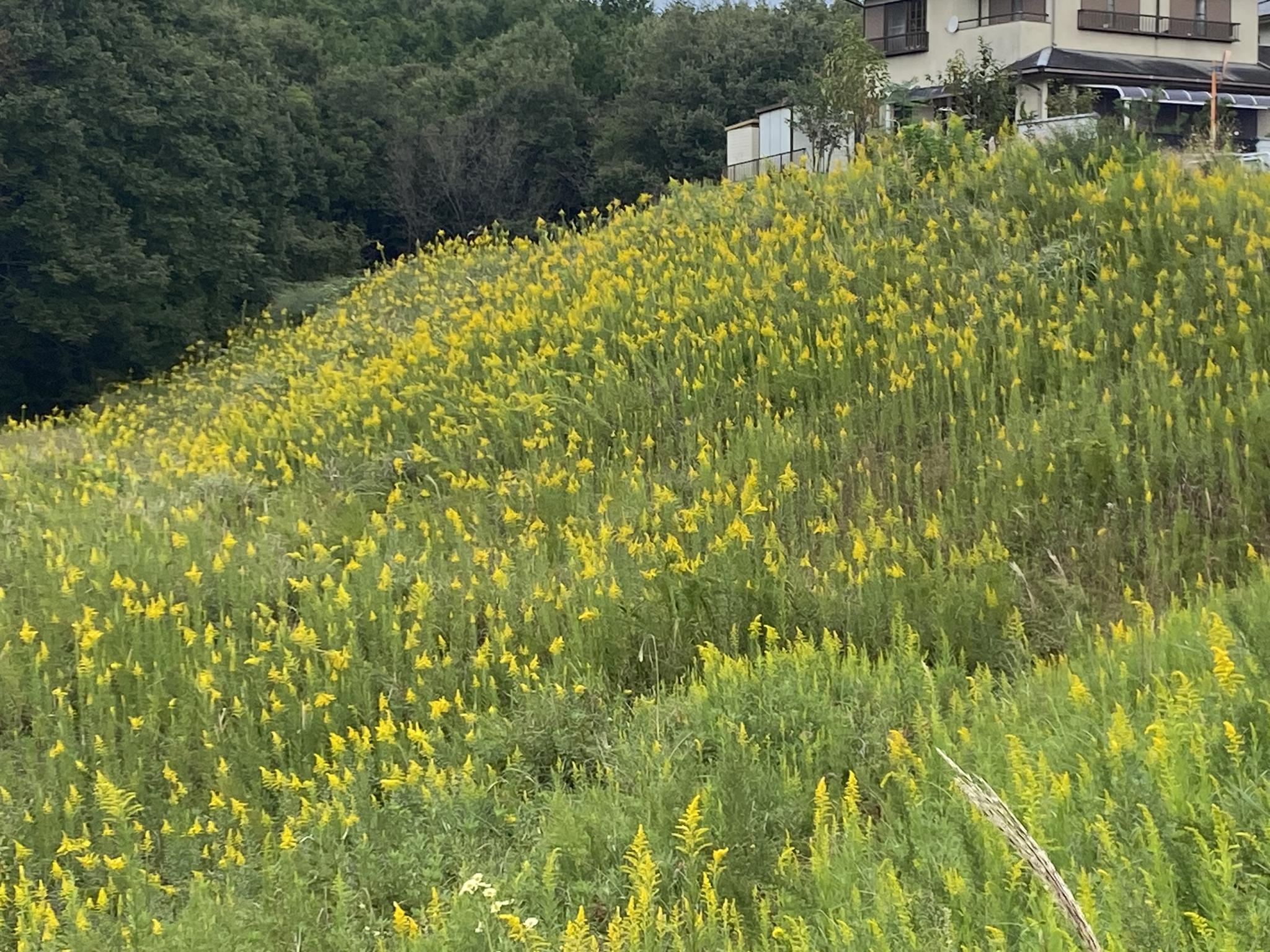 我が家の裏も一面に黄色い花で覆われています。
