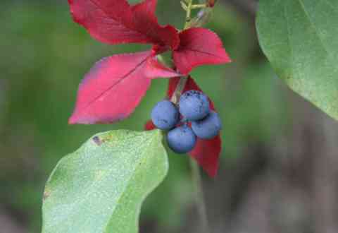 奇麗な写真ですね。青色の葉と紫色の実と赤い葉の