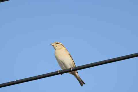 琵琶湖水鳥センターの近くの電線にとまっていたこの小鳥・・・何という名の鳥でしょうか?図鑑を見ても同定できる画像がありません。博学博識の皆様どうぞご教示のほどを・・・・ホオジロの幼鳥かな・・~~