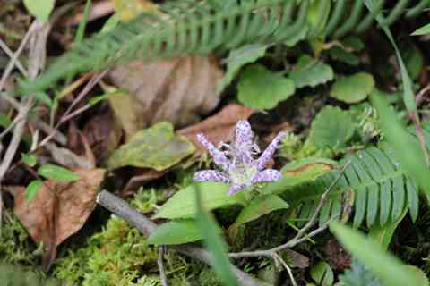 前に群生していた辺りを念入りに探したら数輪のホトトギスを見つけました。小さな花がポツンとありました。