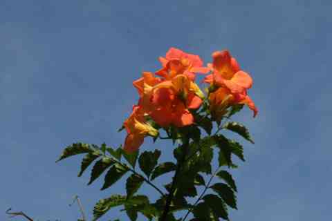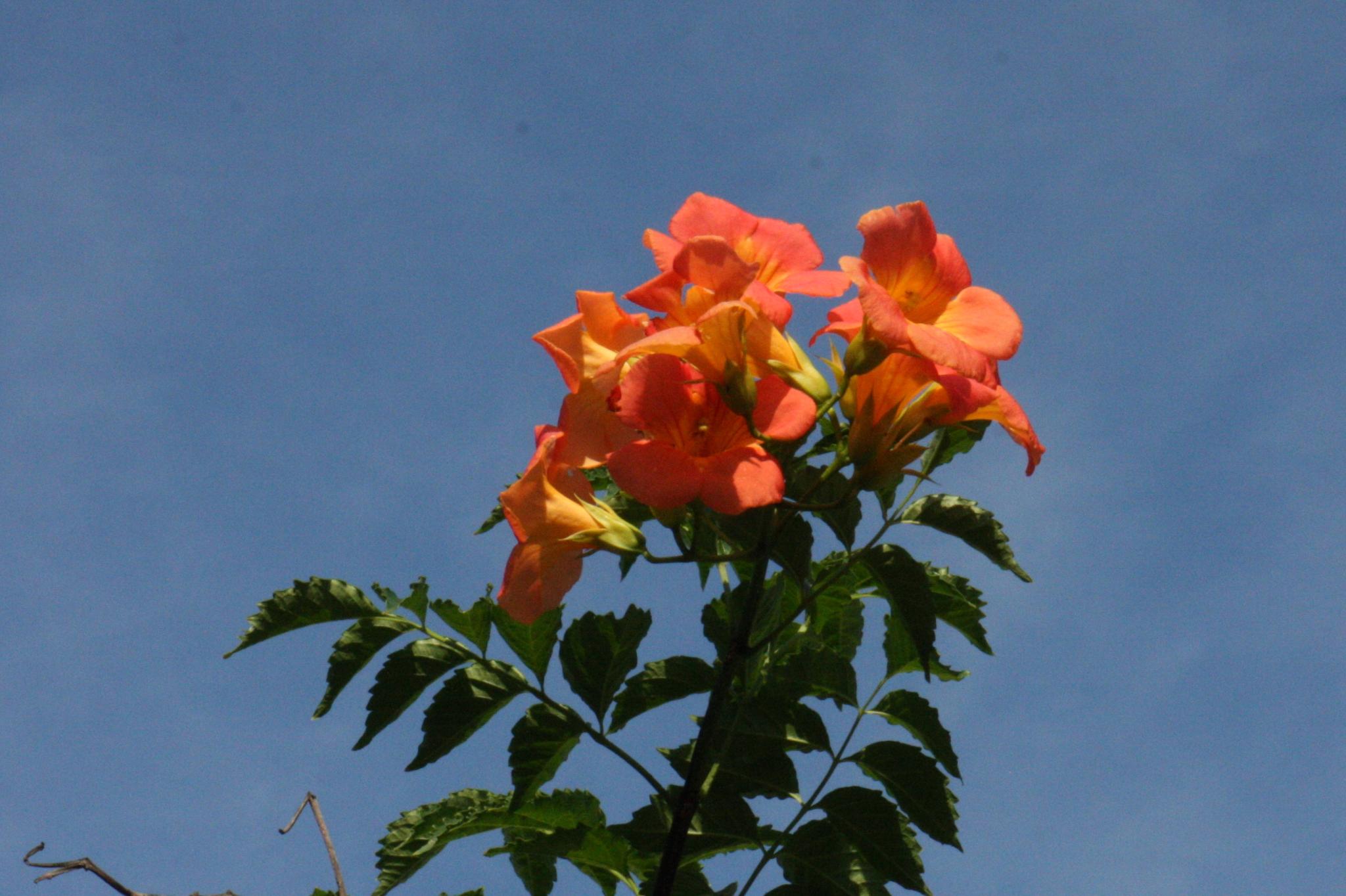 一度散ってしまった後に思い出したように咲いたノウゼンカズラです。