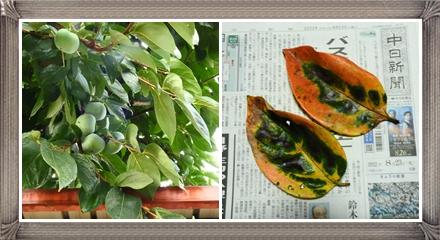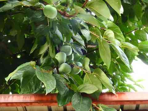 柿の葉紅葉し始めました。栗の木には沢山の実がなって