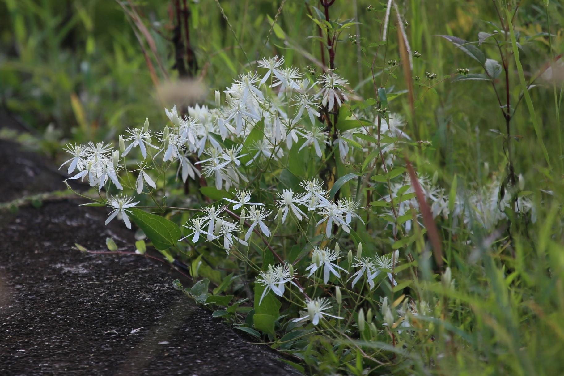 裏の土手の途中にセンニンソウの白い花が咲いていました。