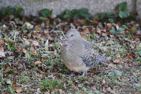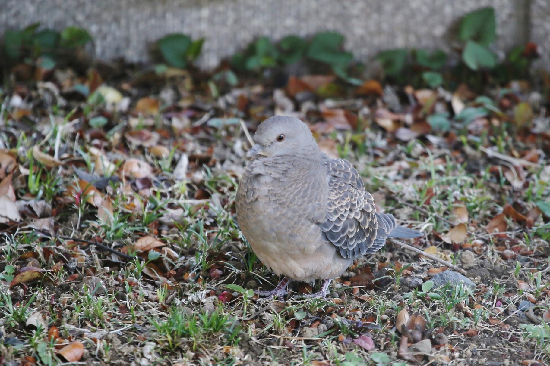 いつものキジバトと様子が違うので、よく見たら羽の色がはっきりしていません。