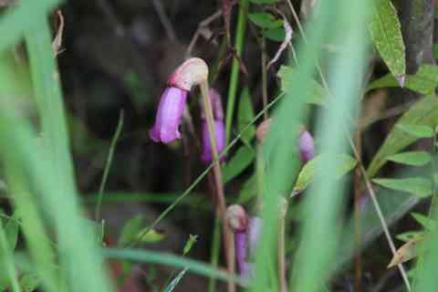 この花はススキなどの根に寄生して生えるので、茂みの中にひっそり