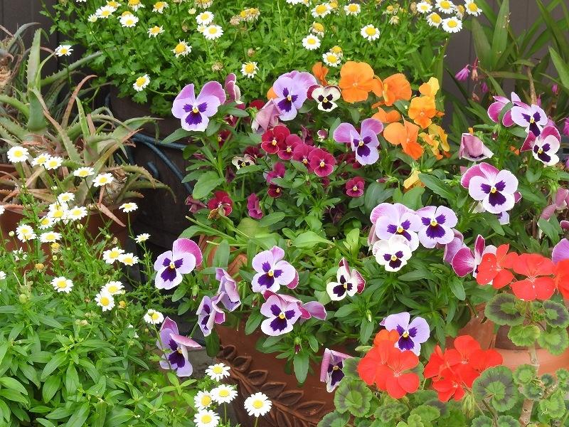 ビオラ、ゼラニュウム、ノースポールが
