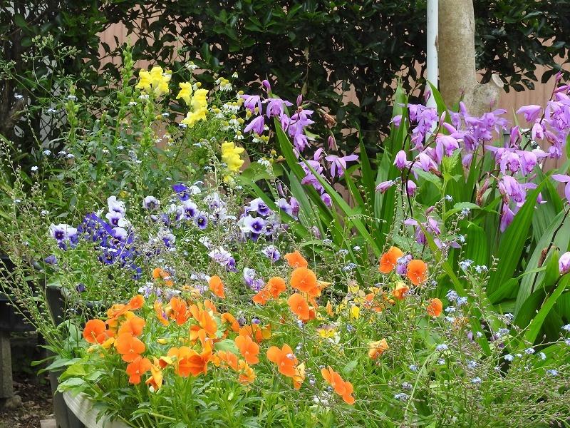 忘れな草、ビオラ、シラン、金魚草等が、