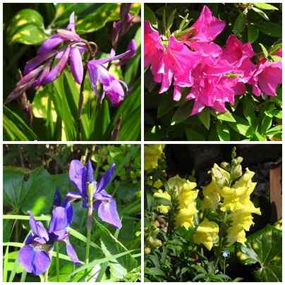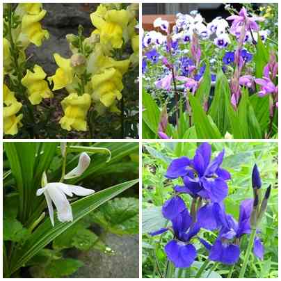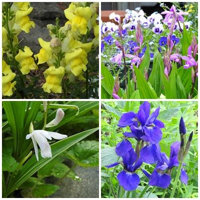 紫蘭、皐月、アヤメ、黄色の金魚草等、