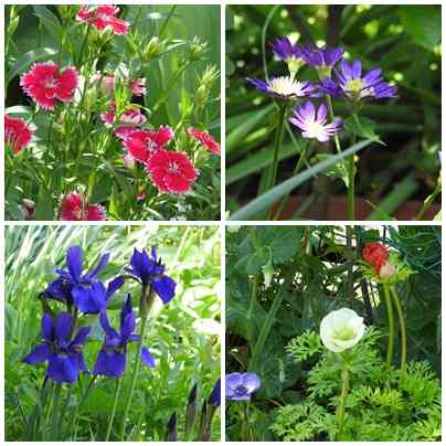 ナデシコ、都忘れ、アヤメ、アネモネが
